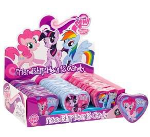 My Little Pony Friendship Hearts Candy Tins feature every little girl's favorite characters including Pinkie Pie, Twilight Sparkle and Rainbow Dash, all in heart-shaped boxes with eye-catching colors.