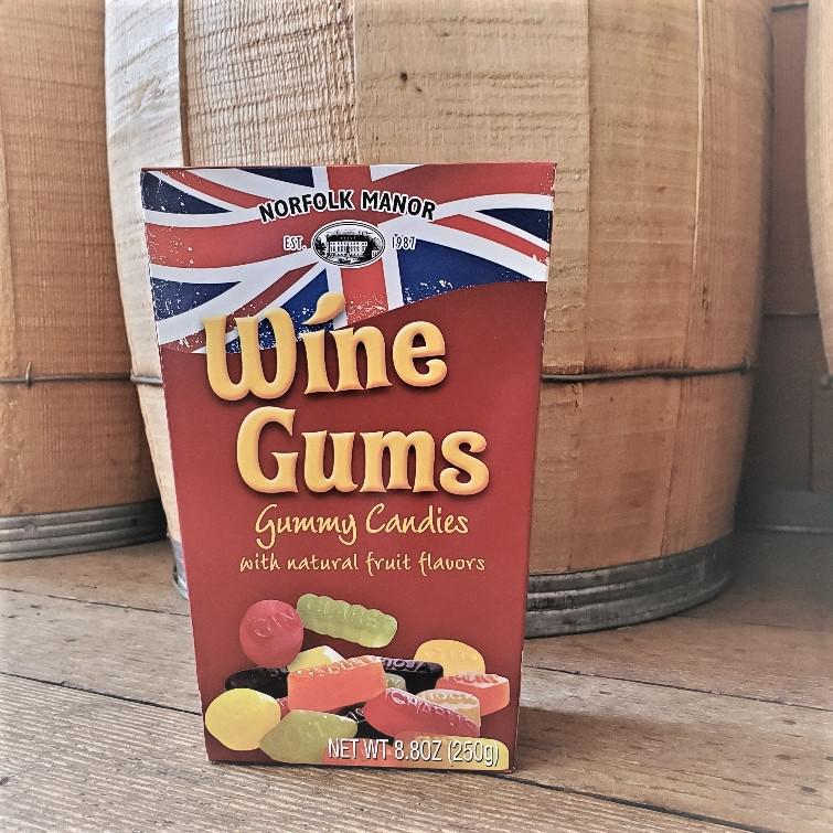 Imported from the UK, Wine gums are chewy, firm sweets similar to gumdrops, except they are not sugar-coated.