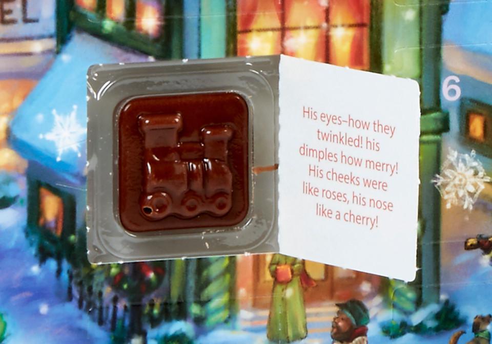 Upon opening each window, find a wounderful piece of gourmet milk chocoalte. Also, find a verse from the theme of the calender!