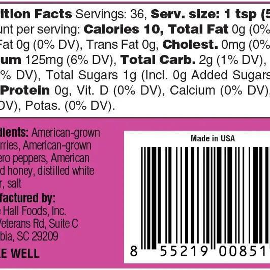 A medium blueberry and habanero sauce. The aging process replaces most of the sweetness with a complex flavor and a warm kick from our orange habaneros for a smooth, balanced heat. It's a versatile sauce that adds a on-of-a-kind twist to pork, poultry, cheese boards, and brunch. - 6 fl. oz. glass bottle - Heat level = Medium - All natural - Veteran Owned & American Grown