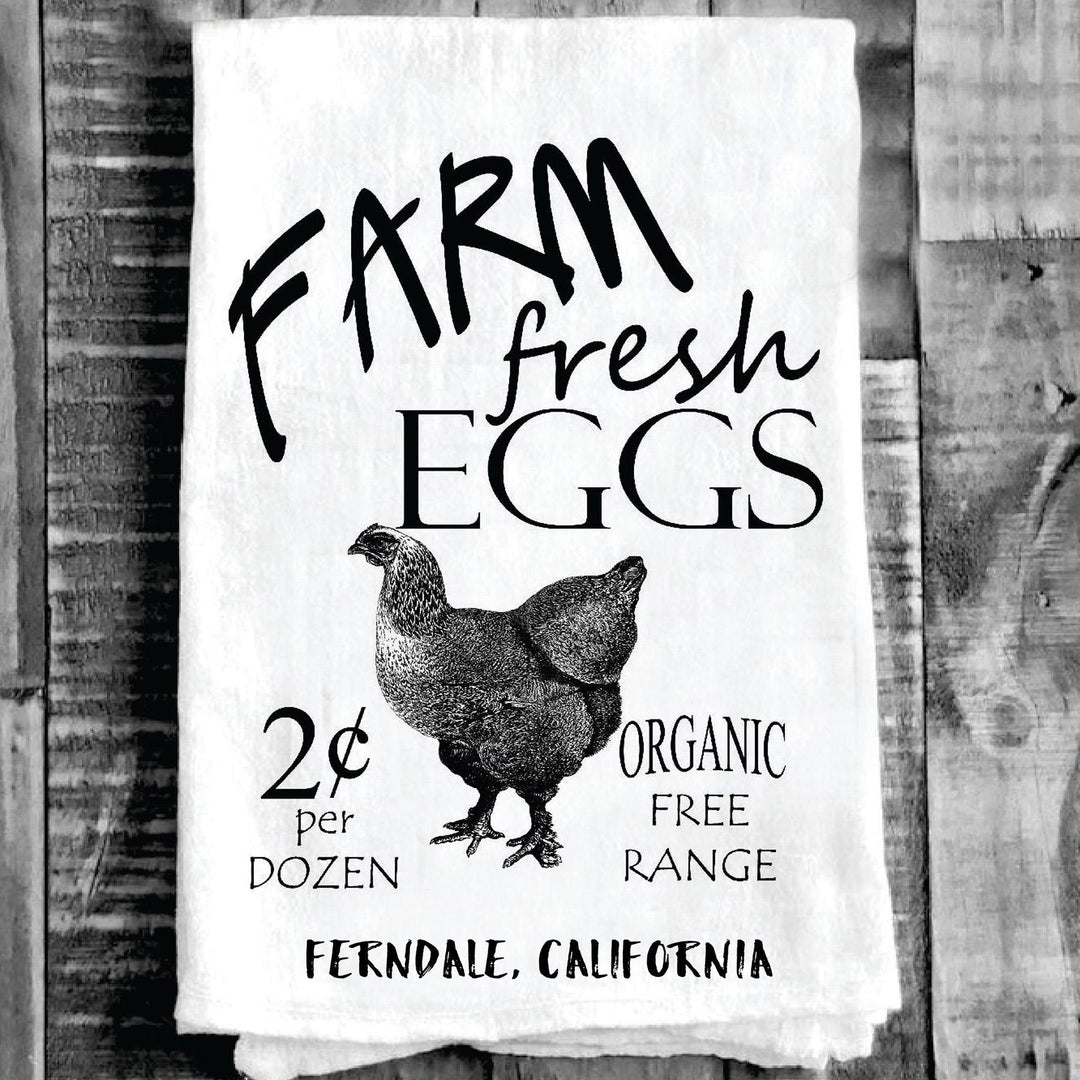 Cotton Tea Towel - Chicken "Farm Fresh Eggs" Ferndale California