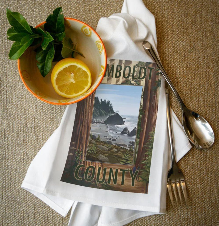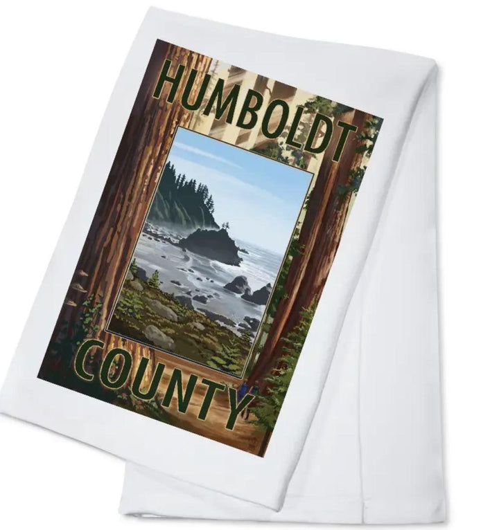 Super soft and absorbent 100% Organic Cotton Tea Towel featuring Humboldt County, California Redwoods