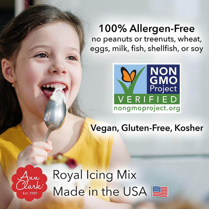 Ingredients: Corn syrup, aquafaba (concentrated chickpea broth), cream of tartar, salt, natural vanilla flavor, potassium sorbate, sodium benzoate. Shelf life 18 months. One 4.3-oz. pouch makes 2 Cups icing, enough to decorate 36 to 48 cookies.