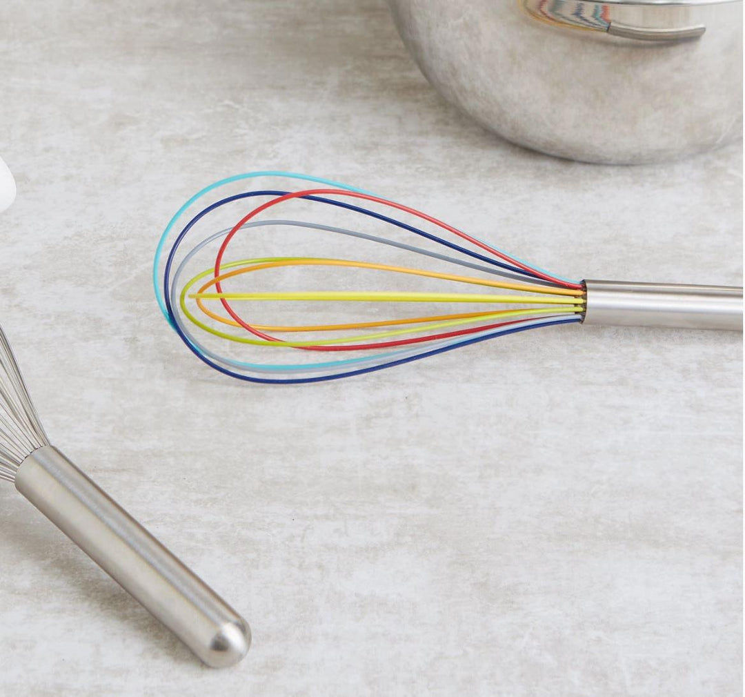 The silicone wrapped wires are heat resistant and safe to use with ceramic, non-stick, and metal cookware. Sealed handle is hygienic and dishwasher safe.