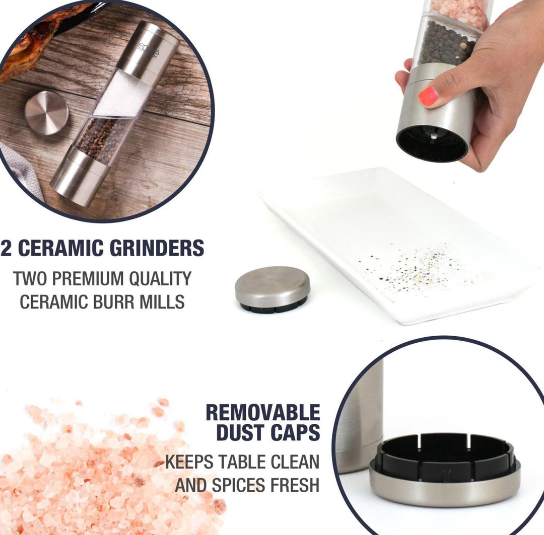 Durable ceramic grinder easily grinds peppercorns, salt, and other spices.