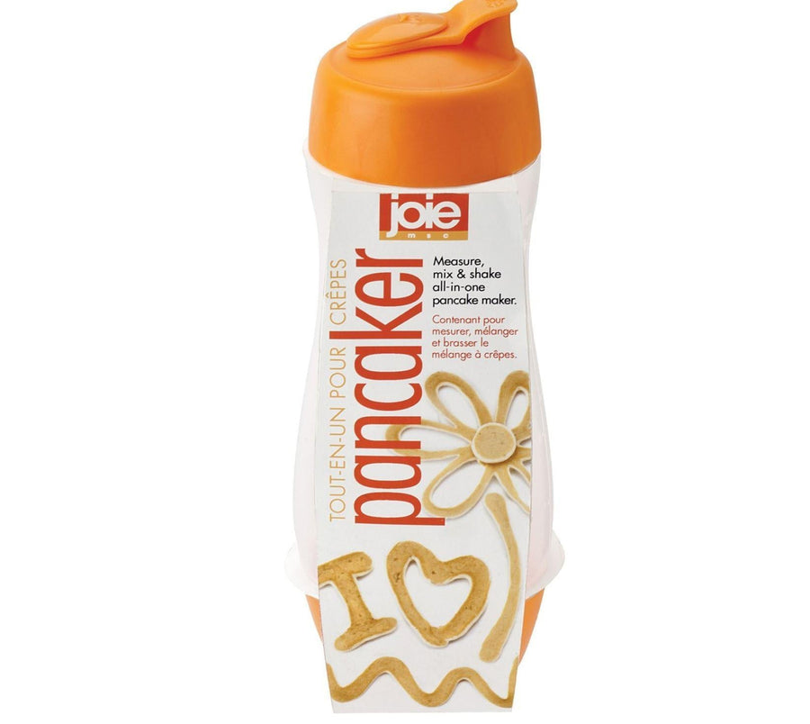 Joie Pancaker measures, mixes, and dispenses pancake batter!
