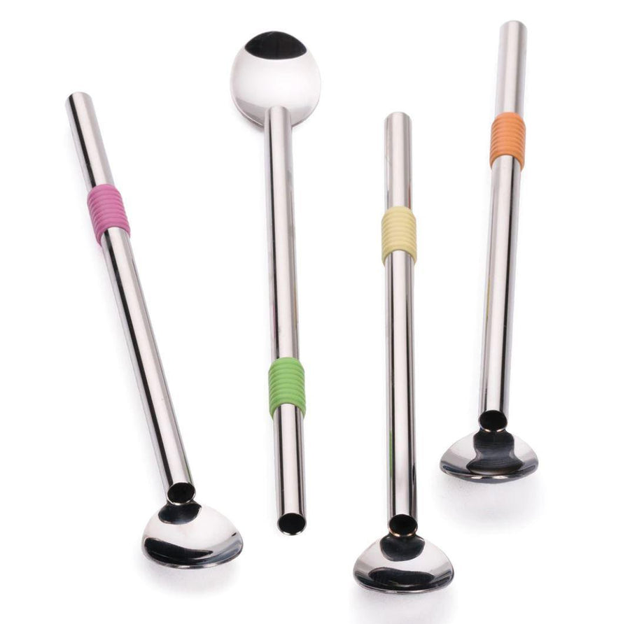 Set of 4 spoons have colorful silicone bands to help identify drinks and provide a nice grip for sipping and twirling.