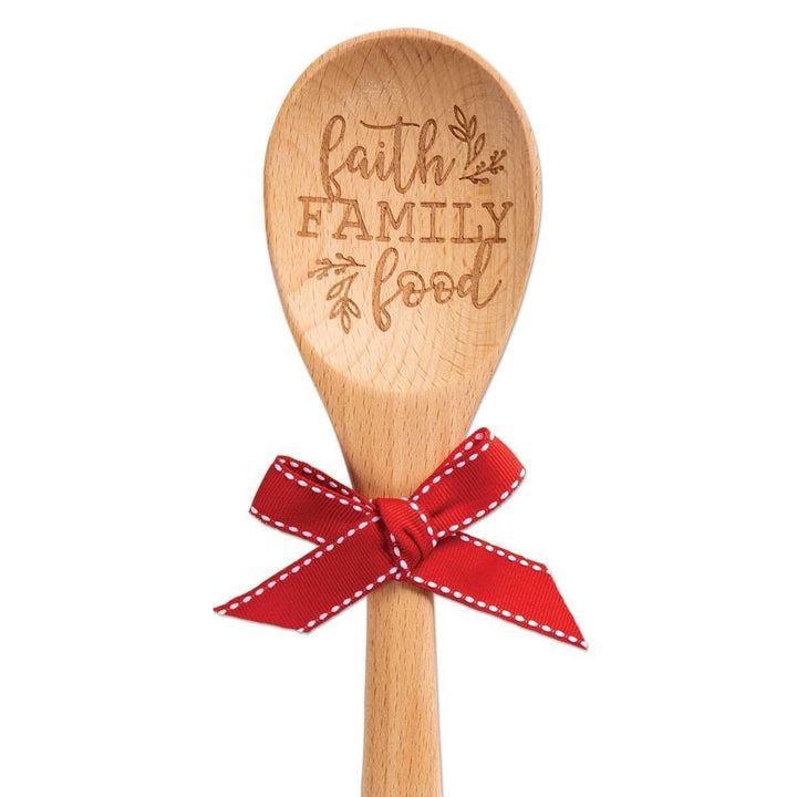Laser-etched wooden spoon with silicone grip and hand-tied ribbon.