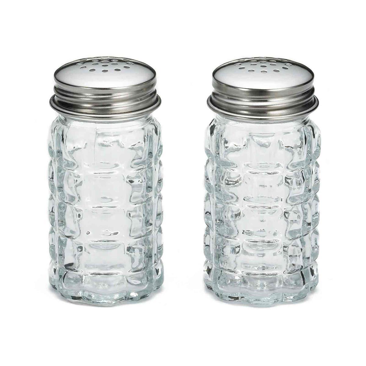Classic salt and pepper shakers help tidy up your seasoning options next to the stove or on the table. Durable, rust-resistant tops.