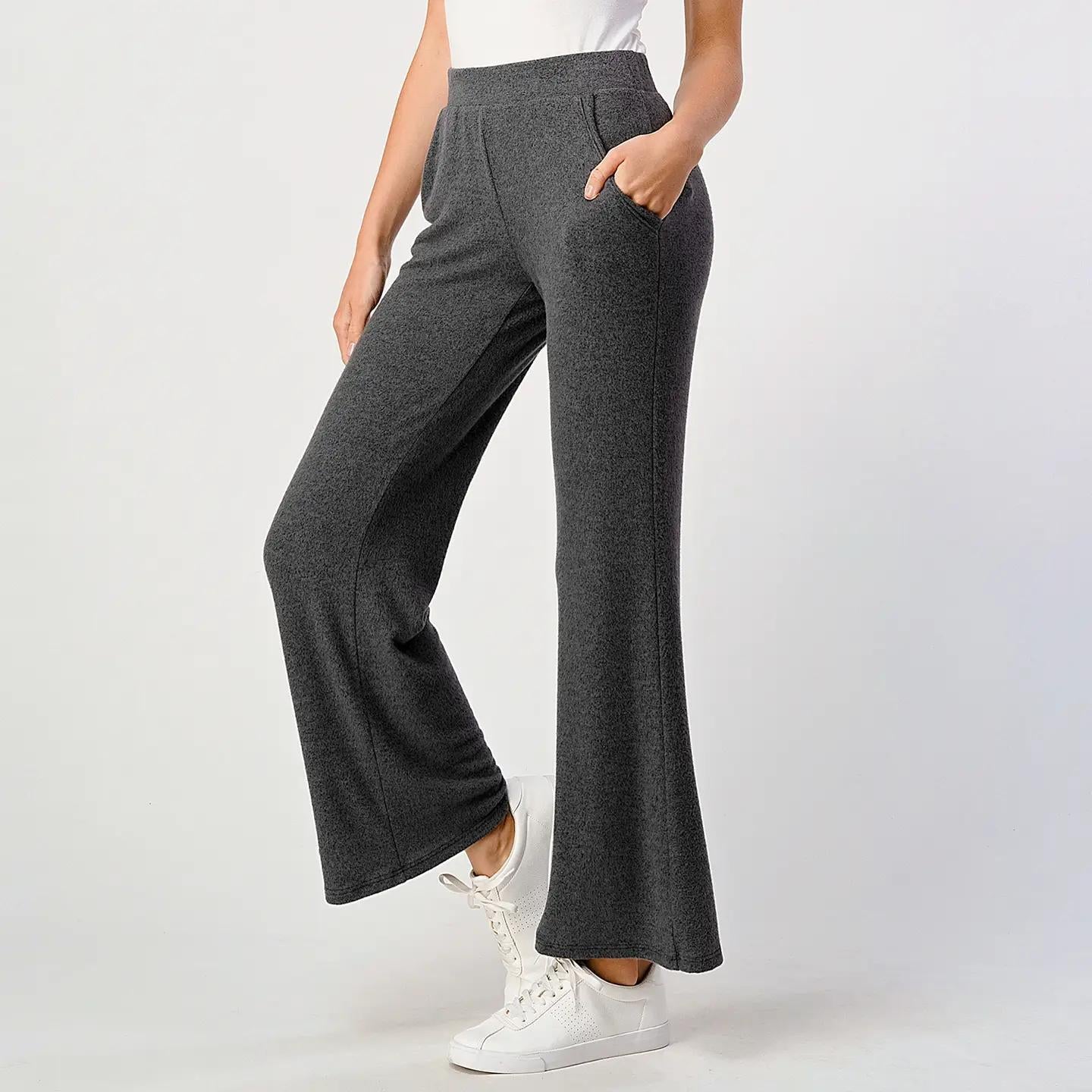 Lounge pants - Pockets - High Waisted - Ankle Length - Wide Leg - Elastic Band Waist - Premium quality Intermingled Hacci knit - Brushed Fabric - Super Soft Heather Grey and Beige: Model is 5'7" tall wearing size Small. Black and Dark Charcoal: Model is 5'9" tall wearing size Small. Made of fine Rayon and Polyester combined together through this special technique called "Intermingle Process" to create its own characteristic look. With brushing finish added, it's insanely soft with cozy feeling and incredible stretch which gives great feel on the skin. Machine Wash Cold Inside Out Gentle Cycle, Do Not Bleach, Tumble Dry Low. Fabric knitted in USA, Garments made in USA.