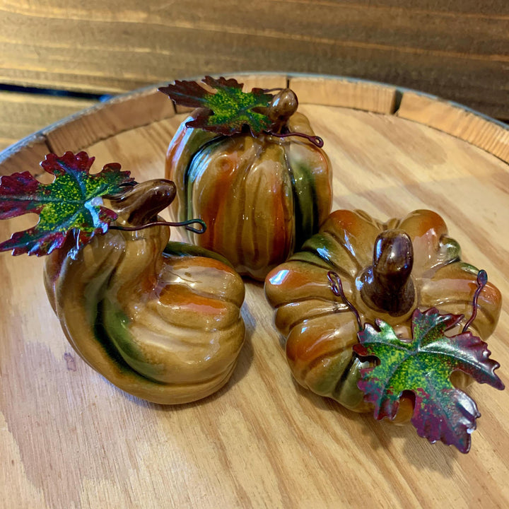 These Fall Painted Ceramic Pumpkins & Gourds are the perfect finish to your themed Fall set up!