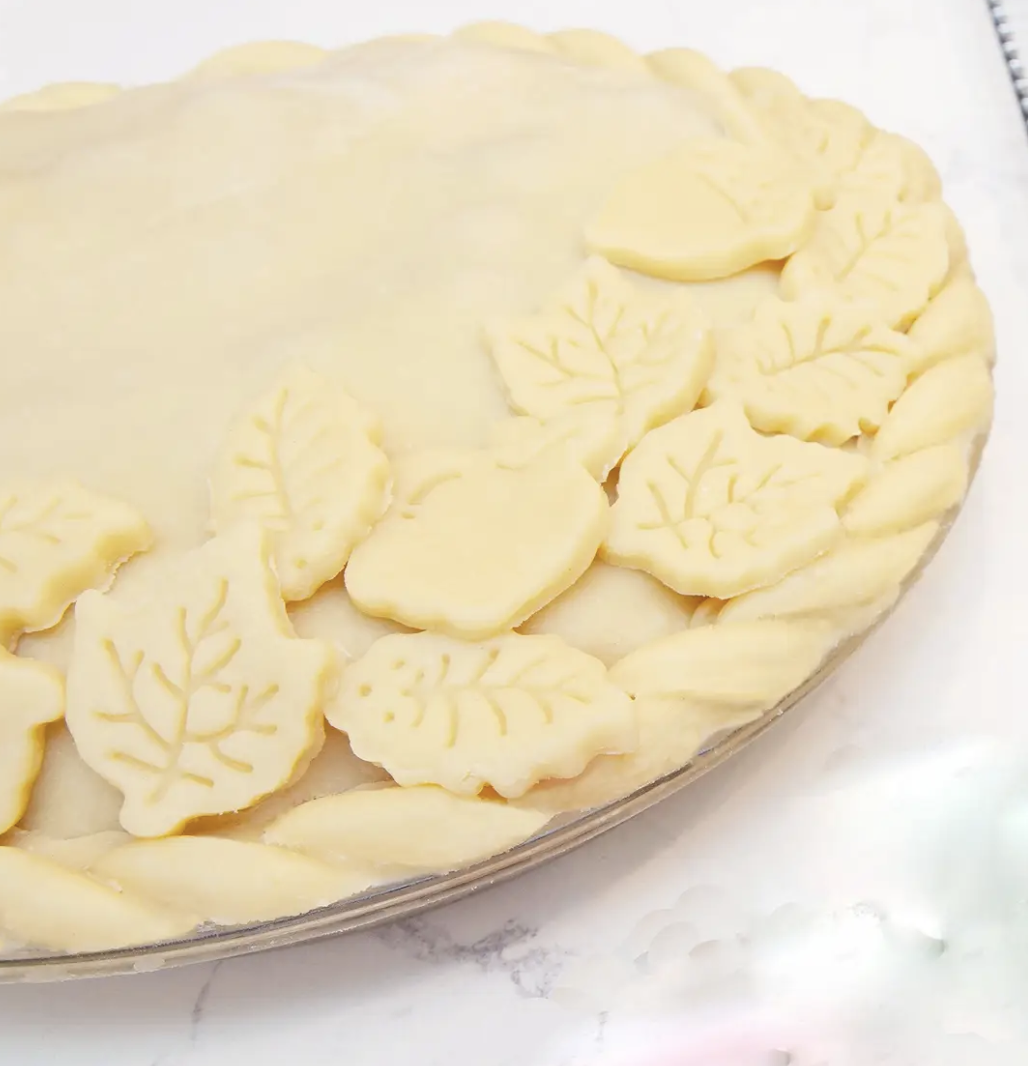 Cut out decorative patterns in pie crust top.
