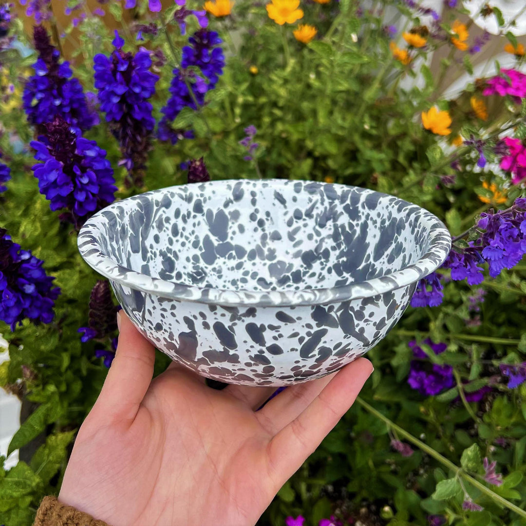 This Crow Canyon Splatter Cereal Bowl is perfect for your morning breakfast. This splatter enamelware bowl is an absolute classic!