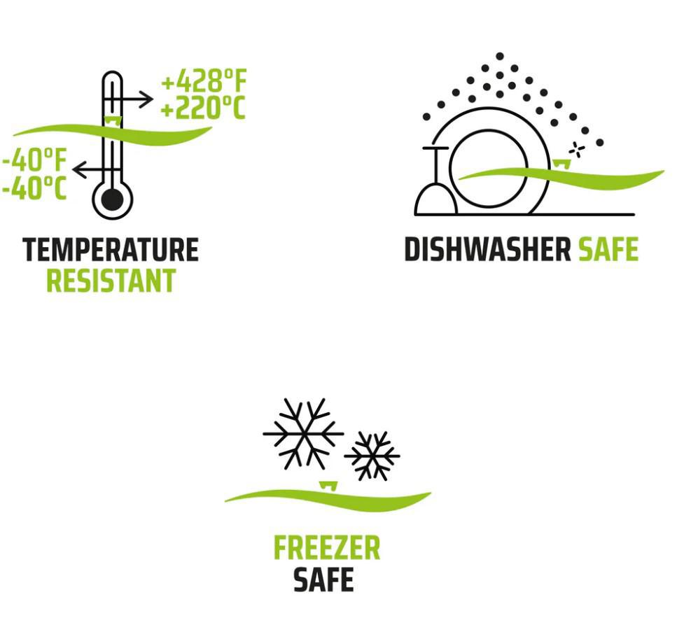 Durable construction allows exposure to extreme temperatures ranging from 220°C / 428°F to -40° C / -40°F. Oven safe and microwave safe, guard against splatters and spills while retaining heat.