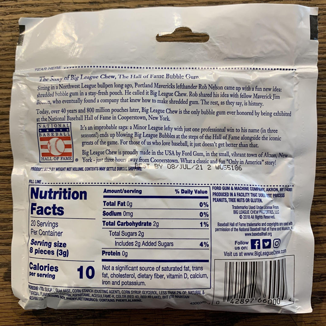 All baseball players' favorite! This classic shredded gum now in blue raspberry. Tear open your Big League Chew Pouch and smell the amazing Blue Raspberry flavor!