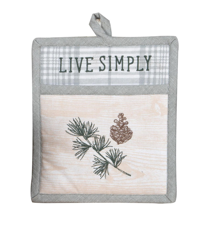 Embroidered Pocket Oven Mitt | Pinecone "Live Simply"