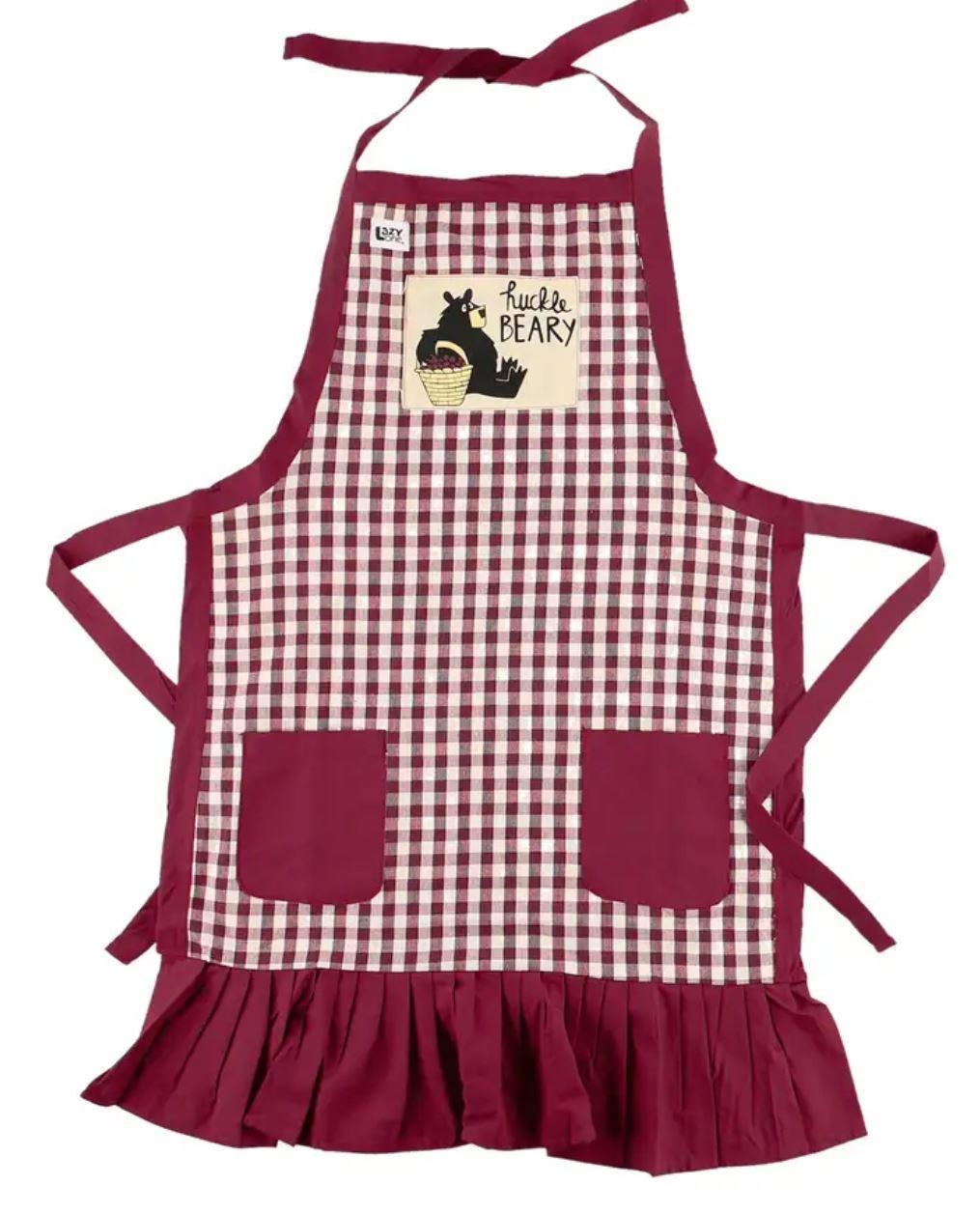 This apron is just the right length and features a homey plaid pattern edged with an attractive pleated ruffle.
