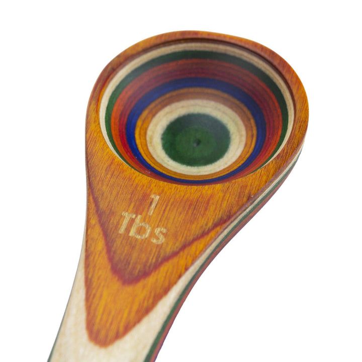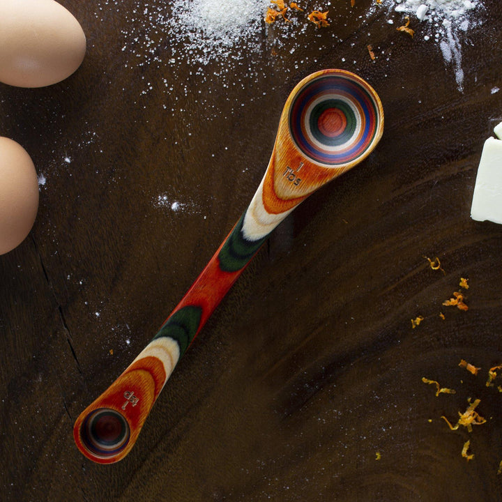 This eye-catching measuring spoon is masterfully crafted from layers of colored birched wood to create a gorgeous color array.