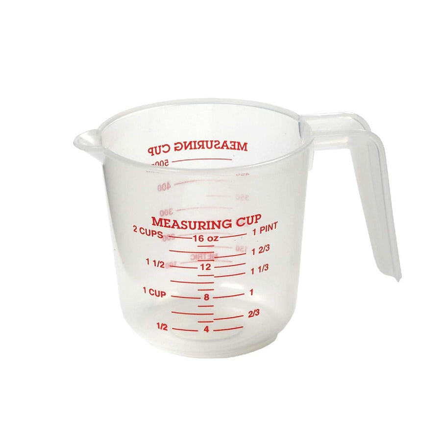 Cup includes a stable base to prevent spills and a comfortable handle for easy transportation. Made of durable plastic, this cup is easy to use and is translucent for precise measurement.