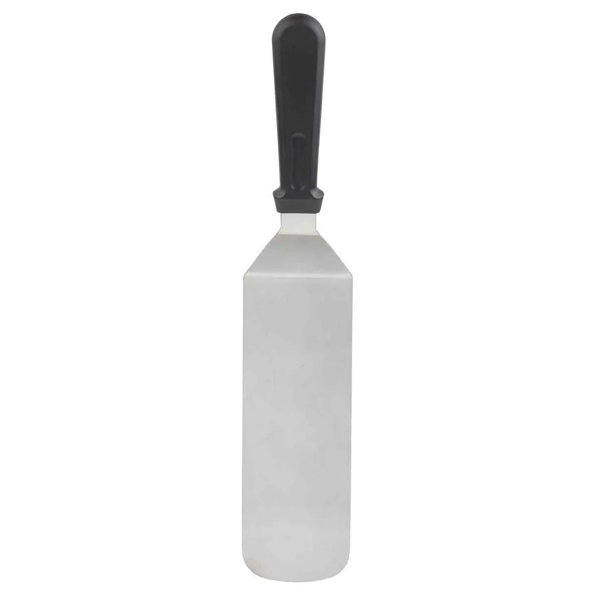 Whether you need it for flipping burgers, constructing cakes, or making an omelet, a reliable turner is a necessary component in any kitchen. Featuring a 7", rounded end blade, this turner has a black handle that meets food safety standards and is easy to clean in the dishwasher.