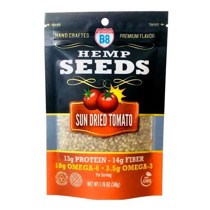 INGREDIENTS: Roasted Whole Hemp Seeds, Sea Salt, Sugar, Dehydrated Vegetables (Garlic, Tomato, Onion), Spices, Natural Flavoring, and Citric Acid.